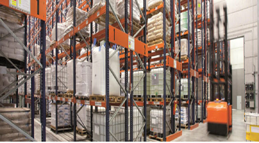 針對有限空間里同類貨物堆垛,推薦使用內(nèi)部駛?cè)胧截浖?。它可幫助減少占用通道,充分利用空間。駕駛員可駕駛叉車進入貨架內(nèi)部進行堆垛作業(yè)。不但能有效利用整個貨架的存儲空間,且初期投資成本較低。作為較為經(jīng)濟的批量存儲方式之一,駛?cè)胧截浖苓m用于存儲單位較少,周轉(zhuǎn)率較低的倉庫